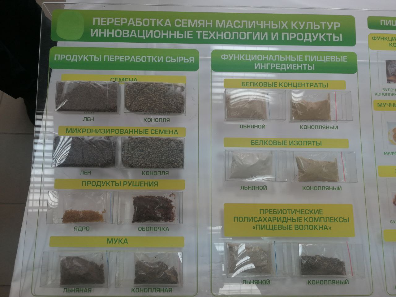 Рабочей группе были продемонстрированы результаты исследований по переработке льна и конопли для различных отраслей промышленности: химической, пищевой, медицинской.